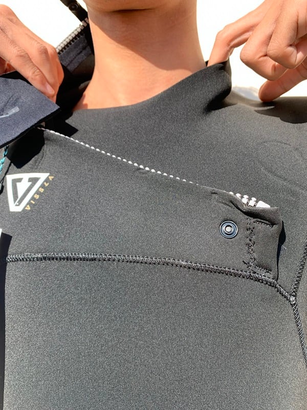 ごわつかず、防水性に優れているチェストジップエントリー。石灰岩原料のスーパーストレッチ素材で容易な脱着、より自由な動きを実現してます。