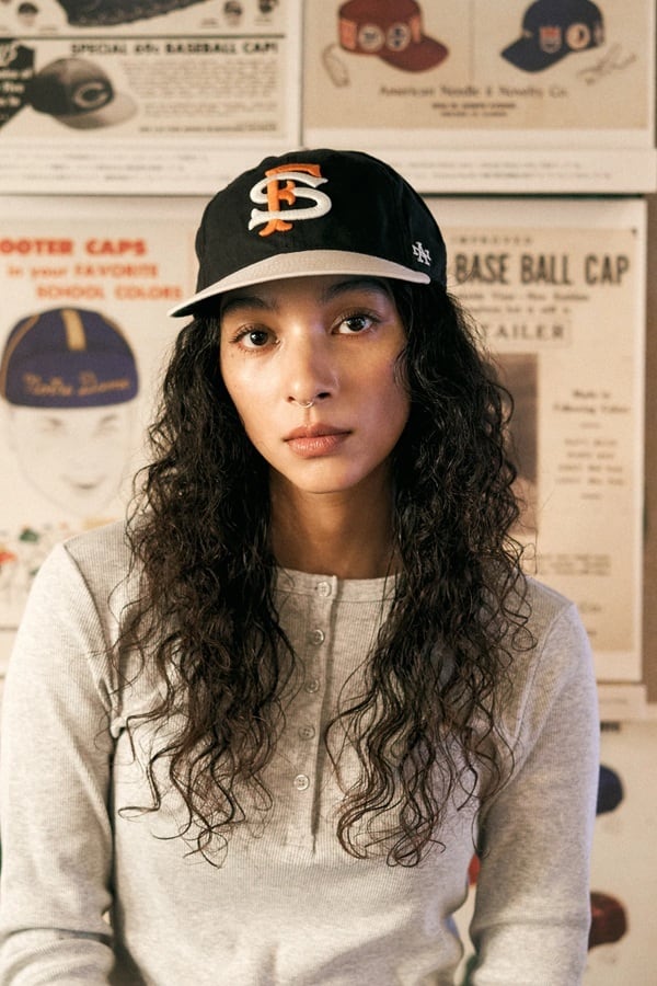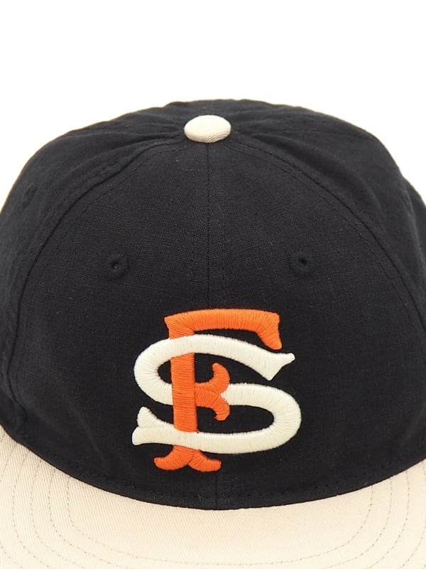クラシックな6パネル構造のベースボールキャップで、フロントには立体的な「SF」の刺繍が施されています。